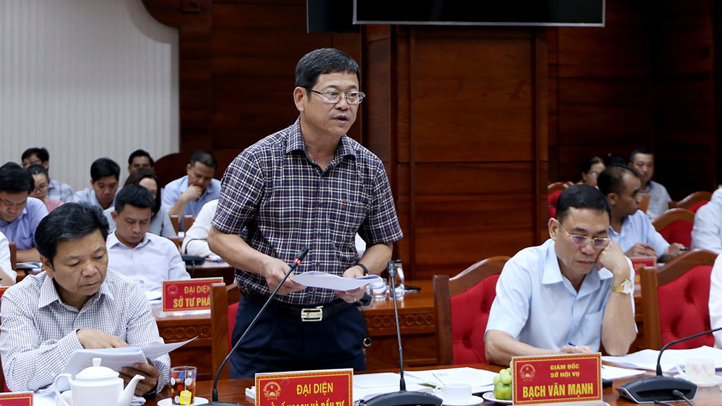 | Đồng chí Bạch Văn Mạnh – Giám đốc Sở Nội vụ báo cáo tại buổi làm việc. |