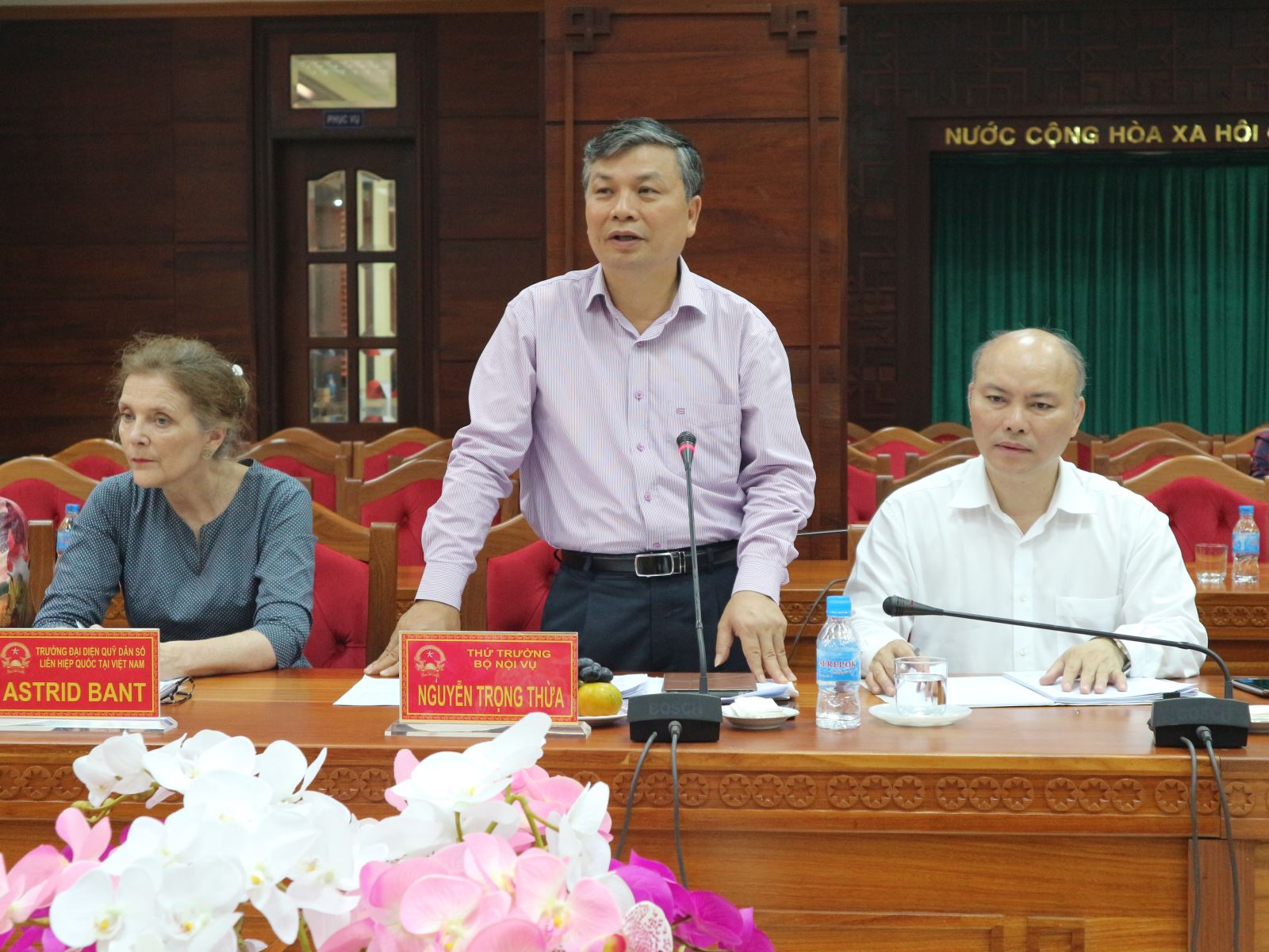 | Đồng chí Nguyễn Trọng Thừa - Thứ trưởng Bộ Nội vụ phát biểu kết luận buổi làm việc |