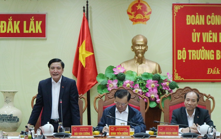 Phát biểu tại buổi làm việc, Ủy viên Trung ương Đảng, Bí thư Tỉnh ủy Bùi Văn Cường cho biết: Đắk Lắk có nhiều thuận lợi trong việc phát triển kinh tế - xã hội, đặc biệt là tài nguyên thiên nhiên và đông dân tộc cùng sinh sống. Tuy nhiên, đời sống người dân gặp nhiều khó khăn và còn nhiều điểm nghẽn về giao thông nên công tác tài chính - ngân sách nhà nước; công tác chống buôn lậu, gian lận thương mại và hàng giả trên địa bàn tỉnh còn nhiều khó khăn.