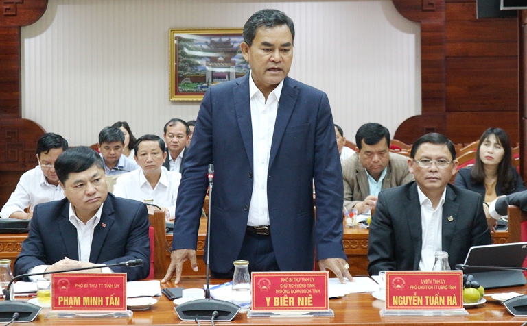 | Phó Bí thư Tỉnh ủy, Chủ tịch HĐND tỉnh Y Biêr Niê tham gia ý kiến |