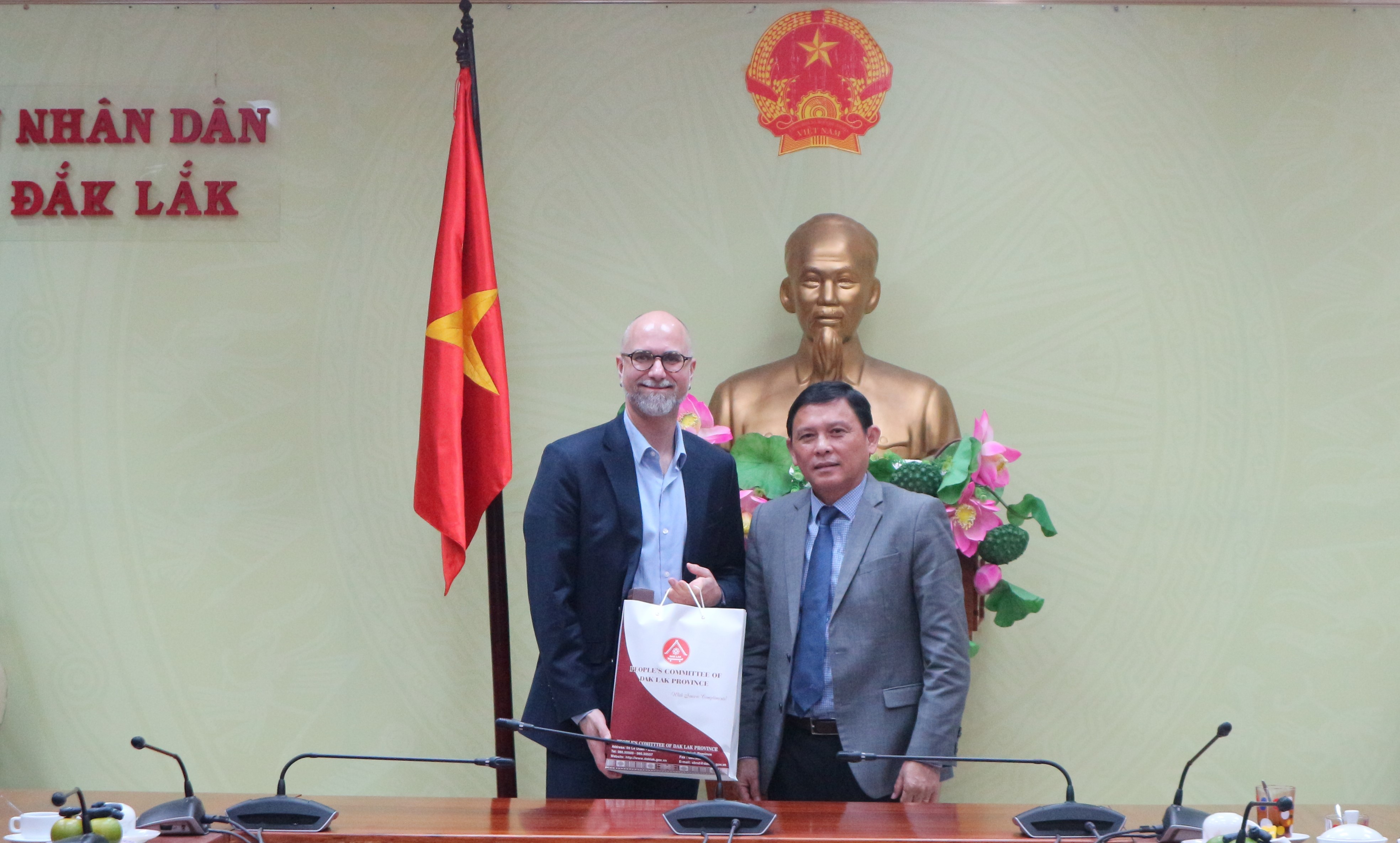 Chiều 21/3, Đoàn Công tác do ngài Shawn Perry Steil Đại sứ Đặc mệnh toàn quyền Canada tại Việt Nam làm Trưởng đoàn đã chào xã giao và có buổi làm việc với UBND tỉnh. Tiếp và chủ trì buổi làm việc về phía tỉnh Đắk Lắk có Phó Chủ tịch Thường trực UBND tỉnh Nguyễn Tuấn Hà; lãnh đạo một số sở, ngành liên quan cùng tham dự.
