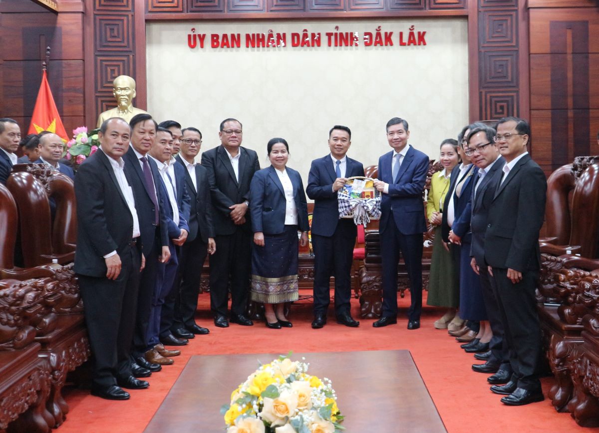 Tỉnh Đắk Lắk tặng quà lưu niệm cho tỉnh Champasak.