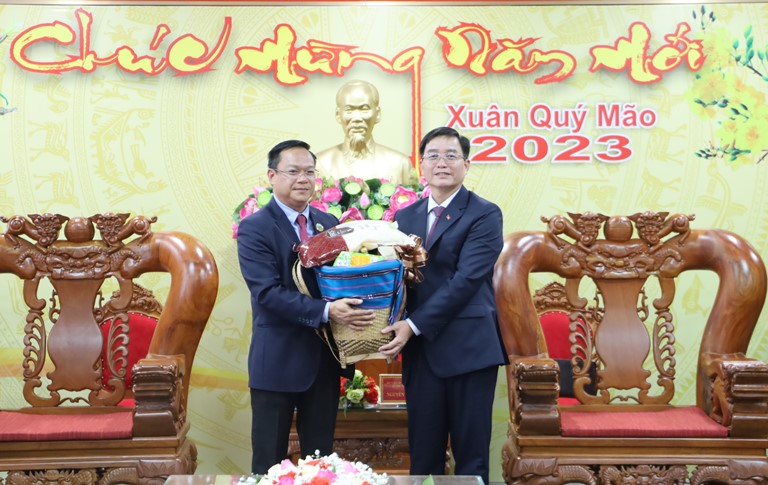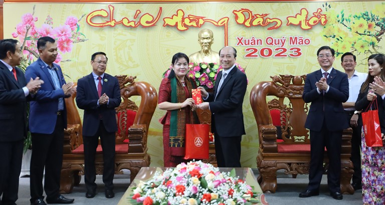 Chiều 9/1, Đoàn công tác của tỉnh Mondulkiri, Vương quốc Campuchia do Ngài Thang Savun - Ủy viên Ban Chấp hành Trung ương Đảng Nhân dân Campuchia, Chủ tịch Ban Chấp hành Đảng bộ Nhân dân Campuchia tỉnh Mondulkiri, Tỉnh trưởng tỉnh Mondulkiri làm trưởng đoàn đã đến thăm và chúc Tết lãnh đạo tỉnh Đắk Lắk.