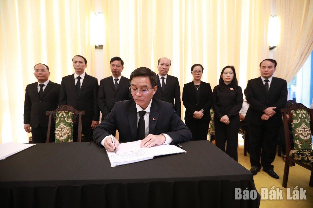 | Thay mặt Đảng bộ, chính quyền và nhân dân tỉnh Đắk Lắk, Ủy viên Trung ương Đảng, Bí thư Tỉnh ủy Nguyễn Đình Trung viết lời chia buồn vào Sổ tang tiễn biệt Tổng Bí thư Nguyễn Phú Trọng |