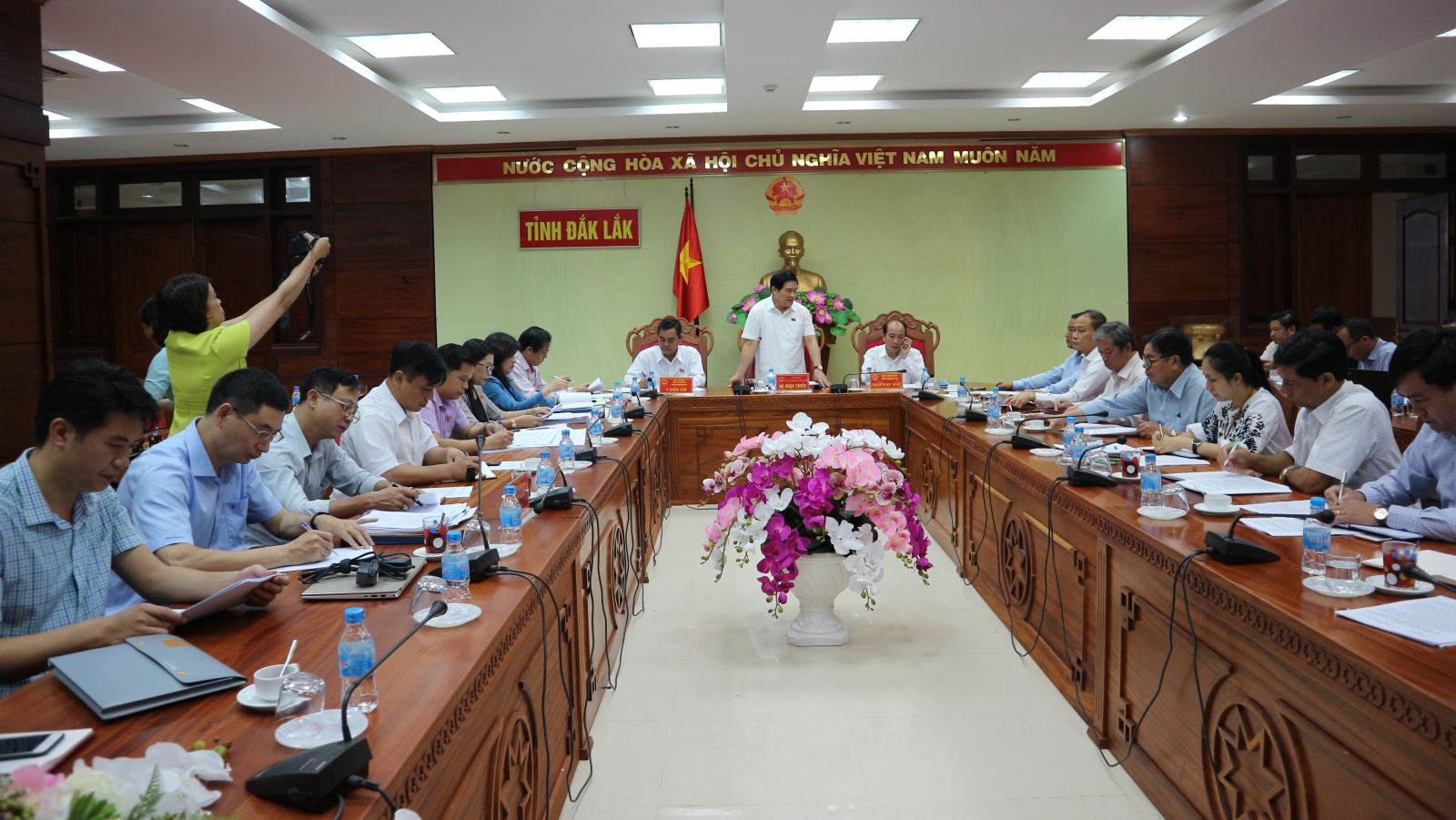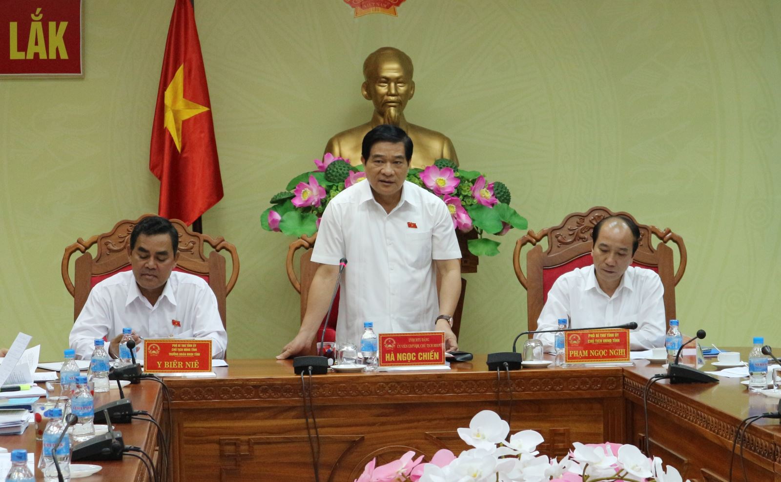 Sáng 21/8, Đoàn Giám sát của Hội đồng Dân tộc do Ủy viên Ban Chấp hành Trung ương Đảng, Ủy viên Ban Thường vụ Quốc hội, Chủ tịch Hội đồng Dân tộc - Hồ Ngọc Chiến làm Trưởng đoàn đã có buổi làm việc với UBND tỉnh về việc thực hiện Nghị quyết 112/2015/QH13 ngày 27/11/2015 của Quốc hội về tăng cường quản lý đất đai có nguồn gốc từ nông trường, lâm trường quốc doanh do các công ty nông nghiệp, công ty lâm nghiệp, ban quản lý rừng và các tổ chức, hộ gia đình, cá nhân khác sử dụng. Tiếp và chủ trì buổi làm việc với đoàn có Chủ tịch HĐND tỉnh, Trưởng đoàn Đại biểu Quốc hội tỉnh Y Biêr Niê; Chủ tịch UBND tỉnh Phạm Ngọc Nghị; lãnh đạo UBND tỉnh cùng đại diện lãnh đạo các sở, ngành có liên quan.
