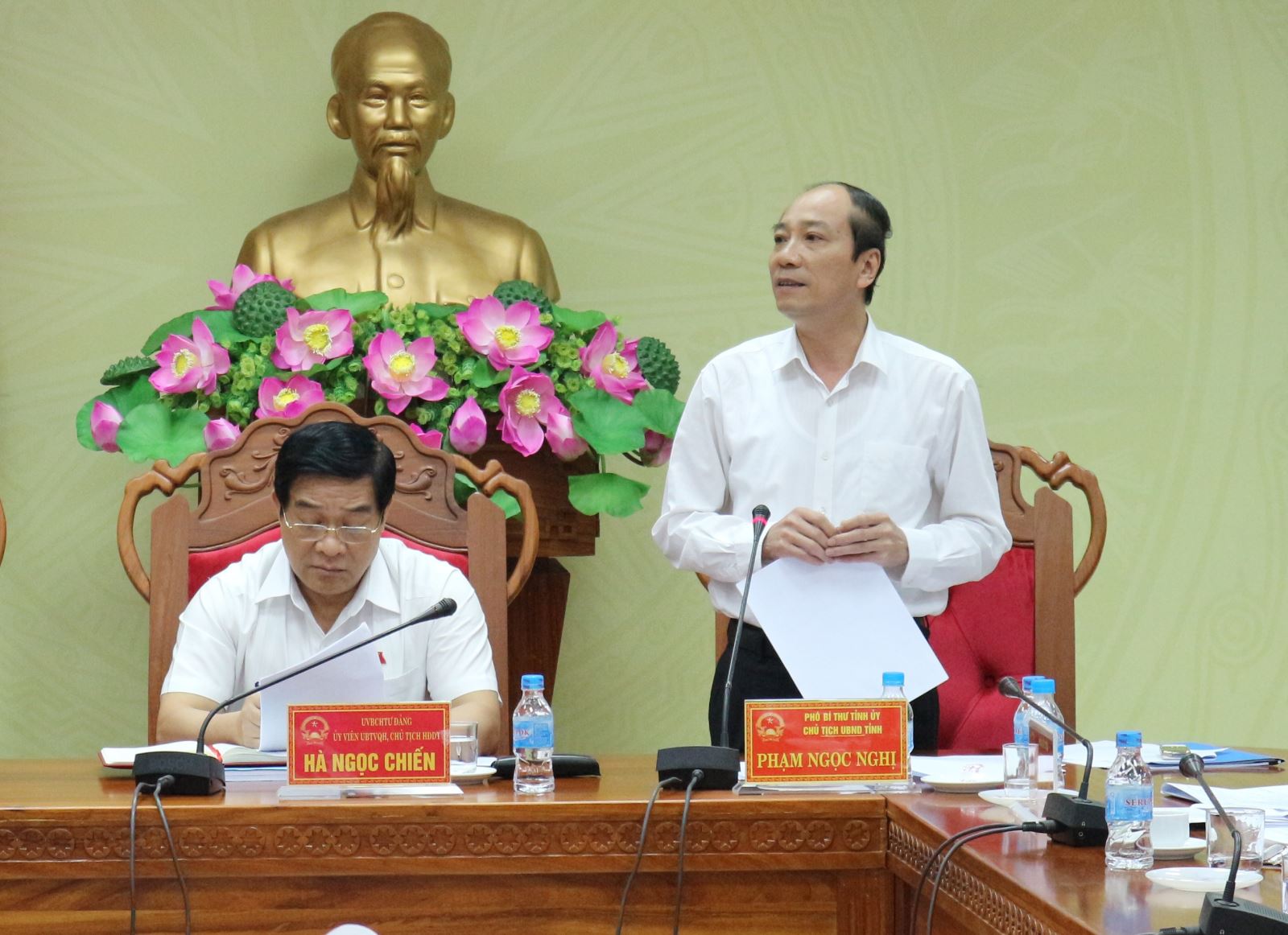 | Chủ tịch UBND tỉnh - Phạm Ngọc Nghị tham gia ý kiến tại buổi làm việc |