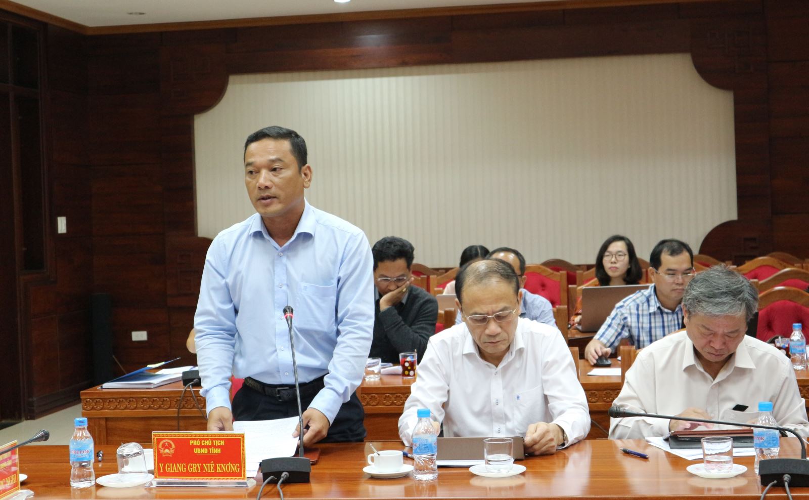 | Phó Chủ tịch UBND tỉnh - Y Giang Gry Niê Knơng trình bày báo cáo |