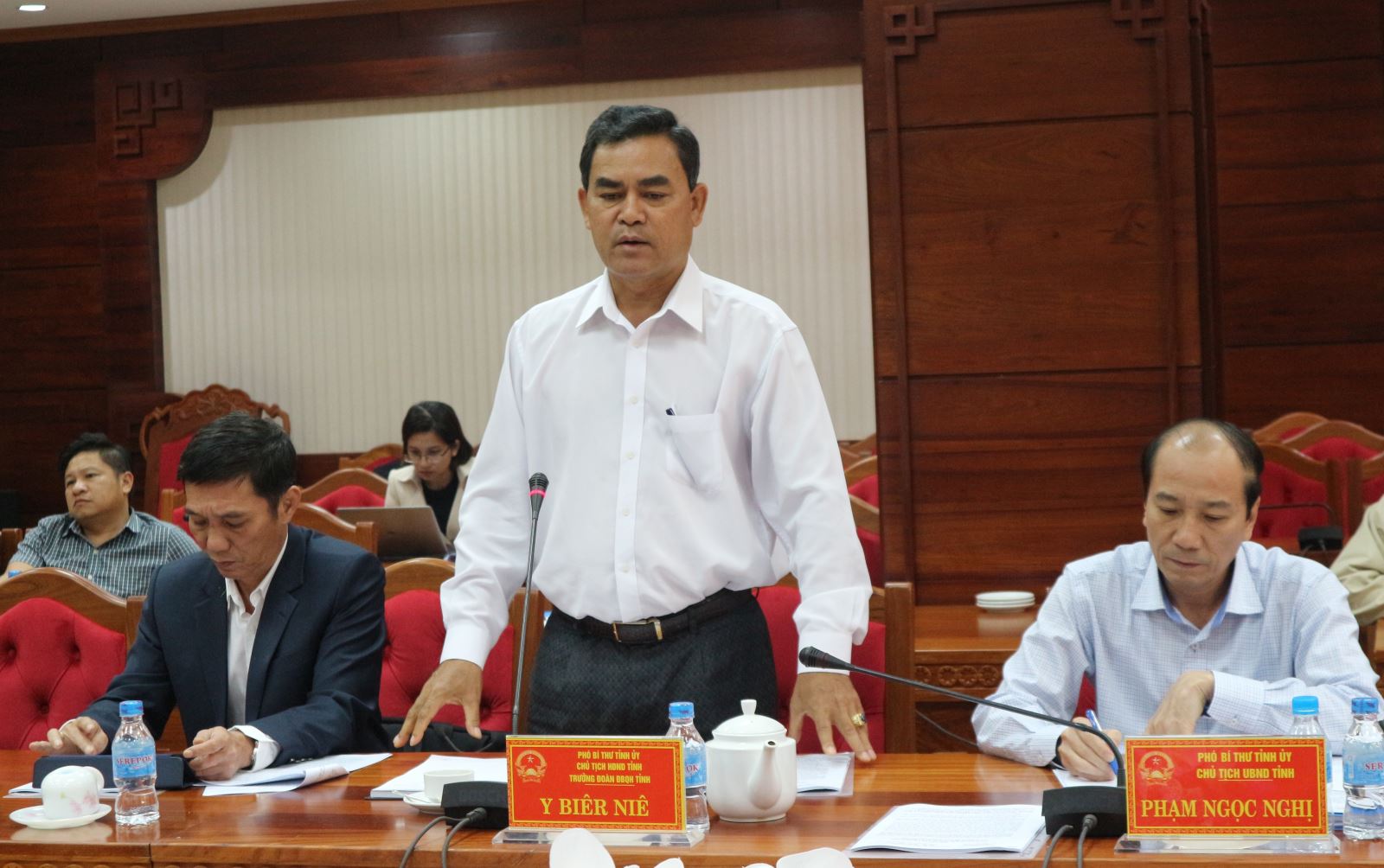 | Chủ tịch HĐND tỉnh Y Biêr Niê tham gia ý kiến |