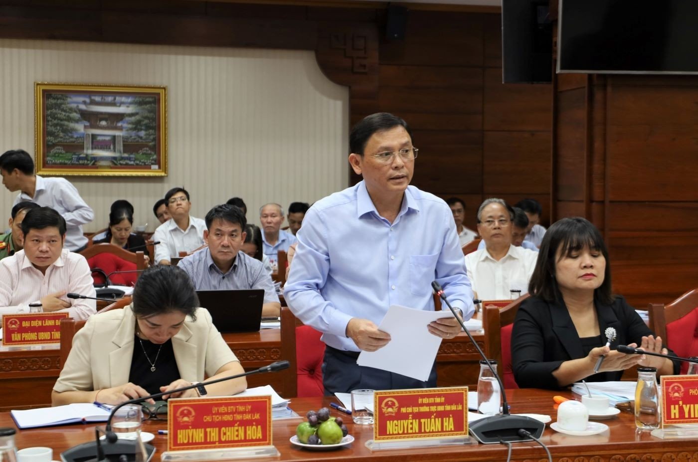 Tiếp và làm việc với đoàn có các đồng chí: Nguyễn Đình Trung - Uỷ viên Trung ương Đảng, Bí thư Tỉnh ủy; Huỳnh Thị Chiến Hòa - Chủ tịch HĐND tỉnh; Nguyễn Tuấn Hà - Phó Chủ tịch Thường trực UBND tỉnh; H’Yim Kđoh - Phó Chủ tịch UBND tỉnh cùng đại diện lãnh đạo các Sở, ngành liên quan.