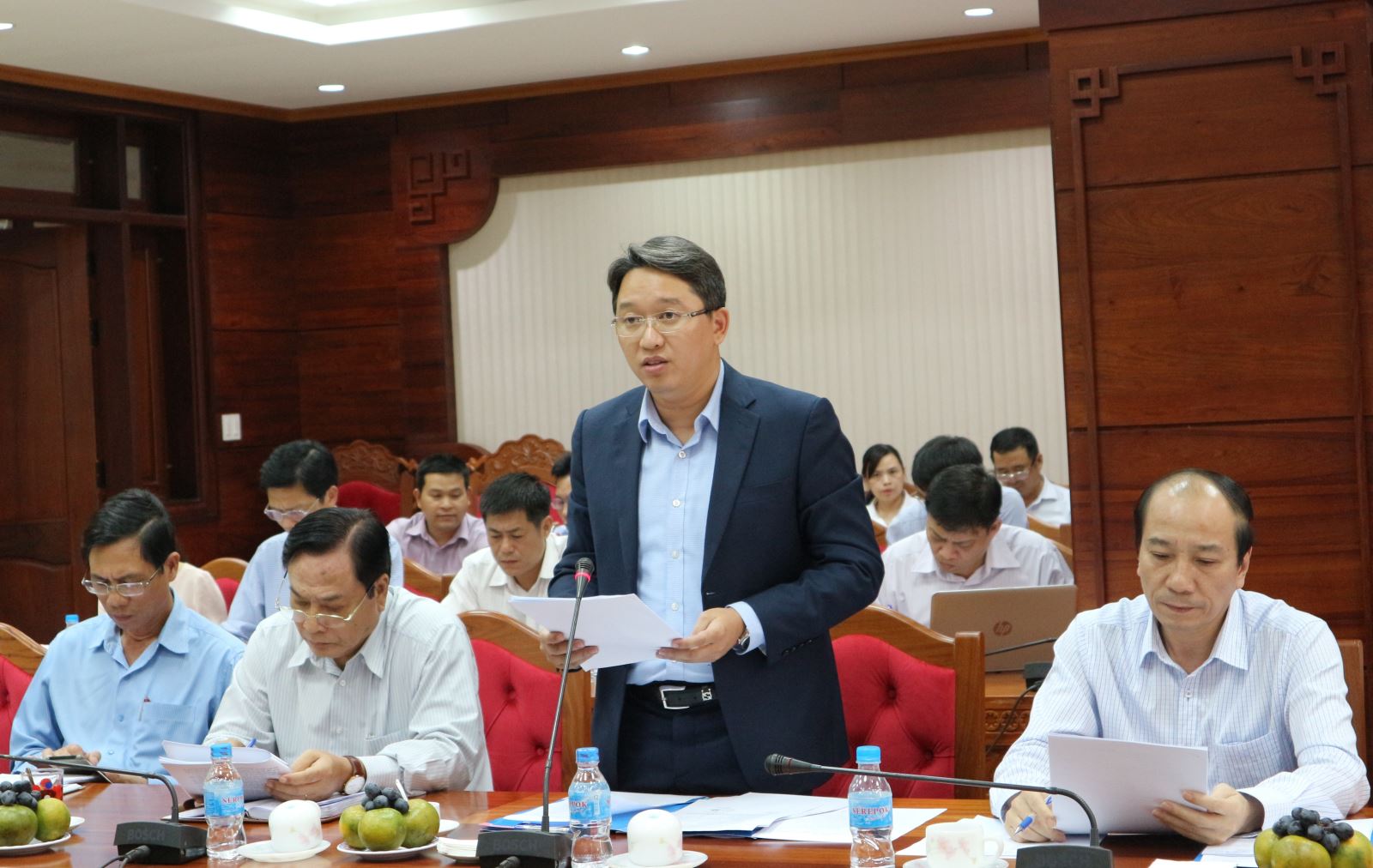 | Phó Chủ tịch Thường trực UBND tỉnh Nguyễn Hải Ninh trình bày báo cáo |