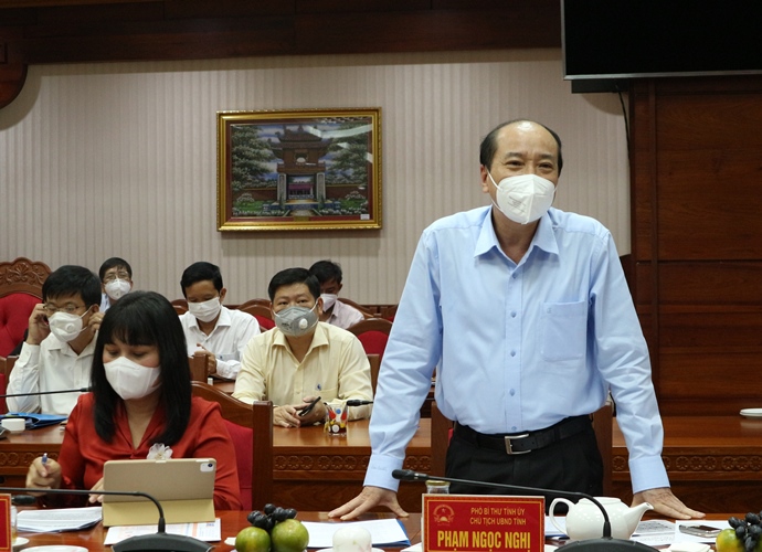 | Phó Bí thư Tỉnh ủy, Chủ tịch UBND tỉnh Phạm Ngọc Nghị phát biểu tại buổi làm việc |