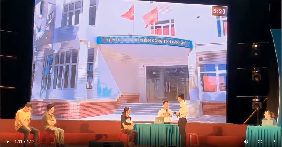 | Phần thi tiểu phẩm "Tôi hài lòng" (Ảnh chụp từ video) |