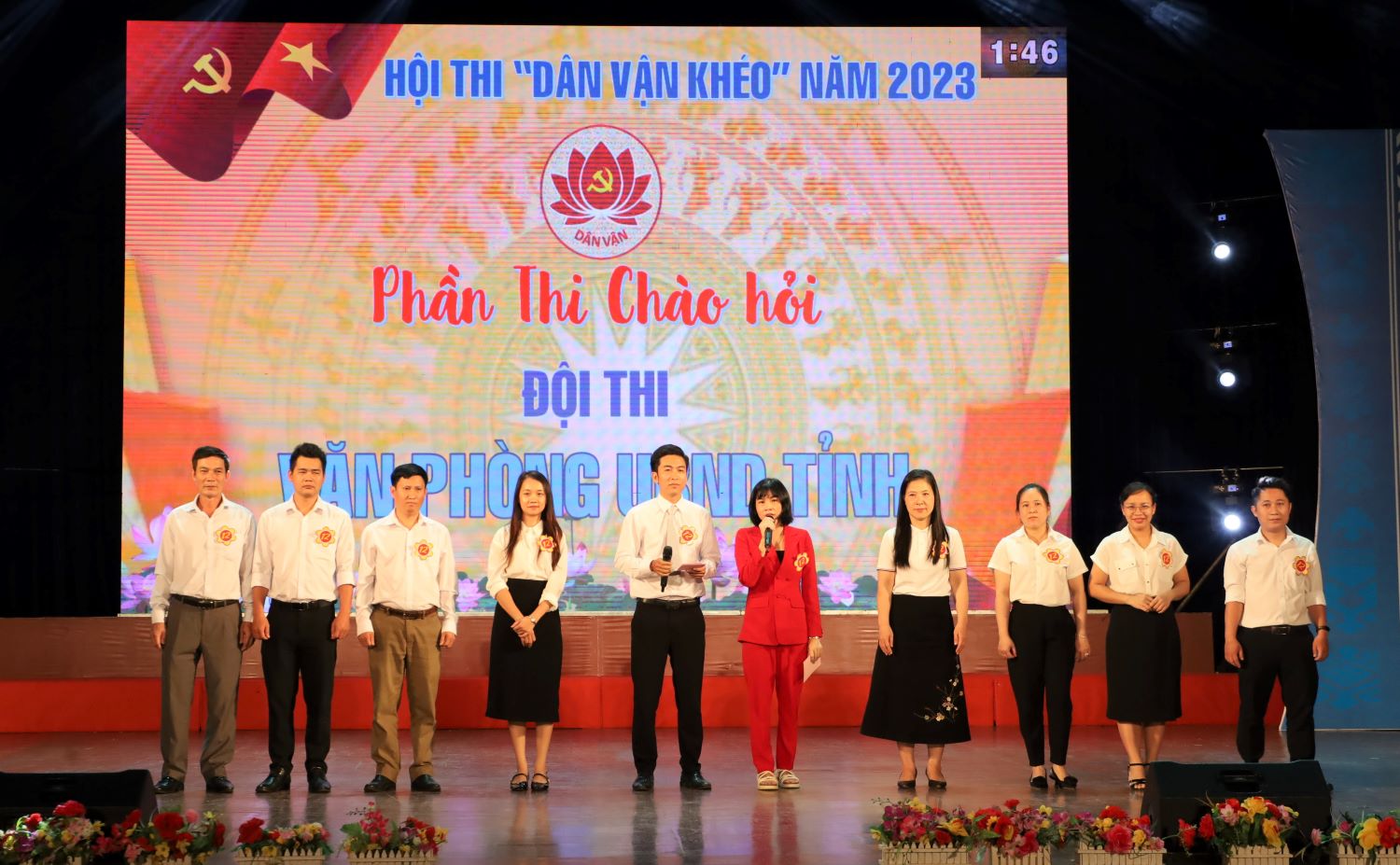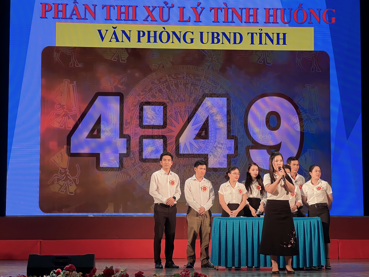Tham gia Hội thi, Đội thi Văn phòng UBND tỉnh cũng qua 3 phần thi gồm: Chào hỏi; Kiến thức (thi lý thuyết và xử lý tình huống); Tiểu phẩm “Dân vận khéo”.