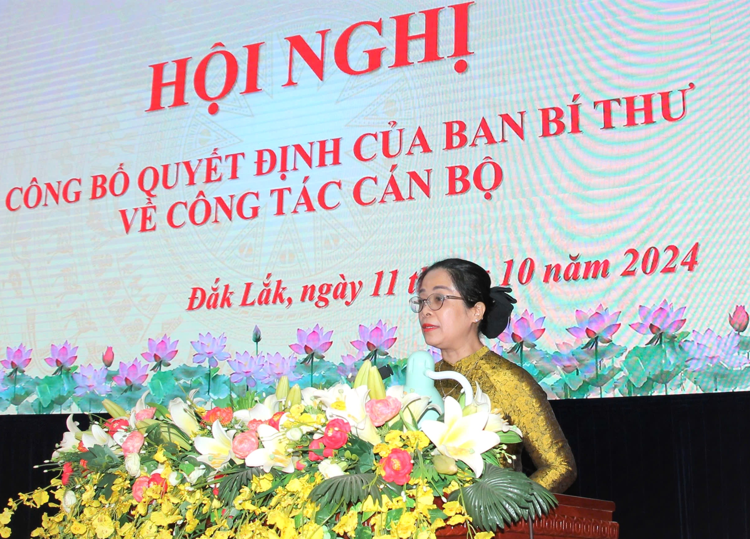 Tại hội nghị, Ủy viên Ban Thường vụ Tỉnh ủy, Trưởng Ban Tổ chức Tỉnh ủy Nguyễn Thượng Hải đã công bố Quyết định số 1559-QĐNS/TW, ngày 16/9/2024 của Ban Bí thư Trung ương Đảng chuẩn y đồng chí Huỳnh Thị Chiến Hòa - Ủy viên Ban Thường vụ Tỉnh ủy, Chủ tịch HĐND tỉnh Đắk Lắk khóa X, nhiệm kỳ 2021 - 2026 giữ chức Phó Bí thư Tỉnh ủy Đắk Lắk, nhiệm kỳ 2020 - 2025.