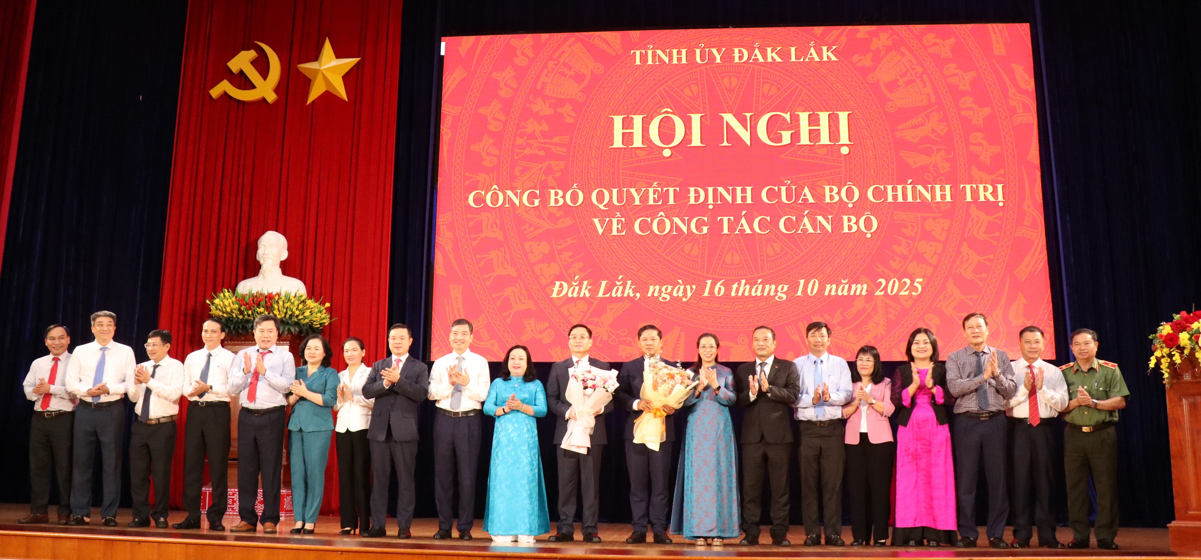 Tại hội nghị, đồng chí Hoàng Đăng Quang, Ủy viên Trung ương Đảng, Phó Trưởng Ban Thường trực Ban Tổ chức Trung ương thông báo ngày 5/10/2025, Bộ Chính trị đã có quyết định điều động, chỉ định giữ chức Bí thư Thành ủy TP. Huế nhiệm kỳ 2025 - 2030 đối với đồng chí Nguyễn Đình Trung, Ủy viên Trung ương Đảng, Bí thư Tỉnh ủy Đắk Lắk. Đồng thời, Ban Tổ chức Trung ương đã công bố Quyết định 2448-QĐNS/TW của Bộ Chính trị về việc chỉ định nhân sự giữ chức Bí thư Tỉnh ủy Đắk Lắk nhiệm kỳ 2025 - 2030 đối với đồng chí Lương Nguyễn Minh Triết, Ủy viên Dự khuyết Trung ương Đảng, Bí thư Thành ủy Đà Nẵng, nhiệm kỳ 2020-2025 giữ chức Bí thư Tỉnh ủy Đắk Lắk nhiệm kỳ 2025 – 2030 từ ngày 15/10/2025.
