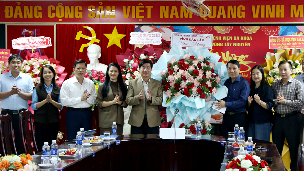 | Đoàn công tác đã đến thăm, chúc mừng tại Bệnh viện đa khoa vùng Tây Nguyên. |