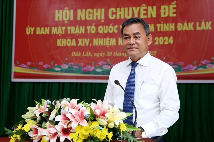 Phát biểu chỉ đạo tại Hội nghị, đồng chí Y Biêr Niê – Phó Bí thư Tỉnh ủy thay mặt Thường trực Tỉnh ủy ghi nhận, biểu dương những thành tích mà Ủy ban MTTQ Việt Nam tỉnh đã đạt được trong thời gian qua. Đồng chí cho biết, qua quá trình thí điểm mô hình Trưởng Ban Dân vận Tỉnh ủy đồng thời là Chủ tịch Ủy ban MTTQ Việt Nam tỉnh và một số địa phương cấp huyện đã đạt được một số kết quả thuận lợi nhất định. Mô hình này giúp giảm đầu mối, giảm con người, giảm ngân sách, phù hợp với tinh thần sắp xếp, đổi mới trong hệ thống chính trị theo hướng tinh gọn, hiệu lực hiệu quả theo Nghị quyết số 18 của Ban Chấp hành Trung ương Đảng. Tuy nhiên, qua thực tế, người đứng đầu cùng một lúc thực hiện cả hai nhiệm vụ chính trị của hai đơn vị với khối lượng công việc rất nhiều là rất khó khăn cho việc sắp xếp, phân bổ thời gian để triển khai thực hiện nhiệm vụ.
