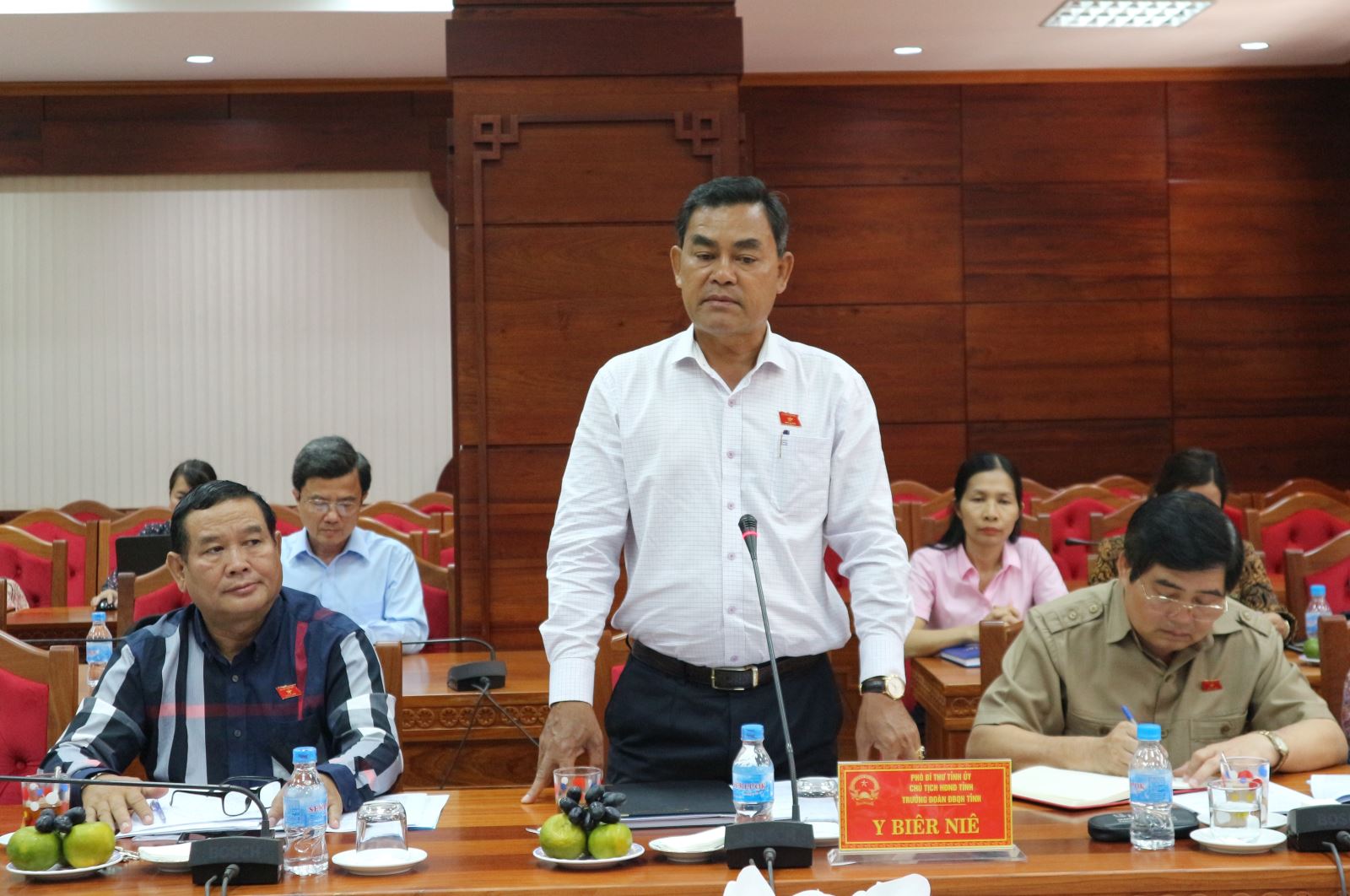 | Chủ tịch HĐND tỉnh, Trưởng đoàn Đại biểu Quốc hội tỉnh Y Biêr Niê kết luận buổi làm việc |