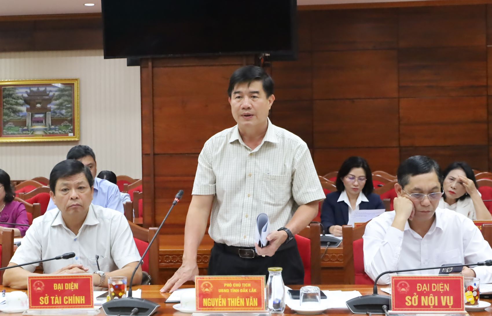 | Phó Chủ tịch UBND tỉnh Nguyễn Thiên Văn phát biểu tại buổi làm việc. |