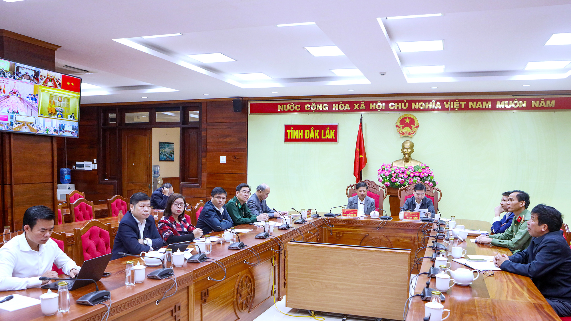 Dự cuộc họp tại điểm cầu UBND tỉnh Đắk Lắk có các đồng chí: Lương Nguyễn Minh Triết - Ủy viên dự khuyết Trung ương Đảng, Bí thư Tỉnh ủy; Tạ Anh Tuấn - Phó Bí thư Tỉnh ủy, Chủ tịch UBND tỉnh; Trương Công Thái - Phó Chủ tịch UBND tỉnh; đại diện các sở, ngành, liên quan; các xã, phường phía Đông tỉnh dự cuộc họp qua hệ thống trực tuyến.