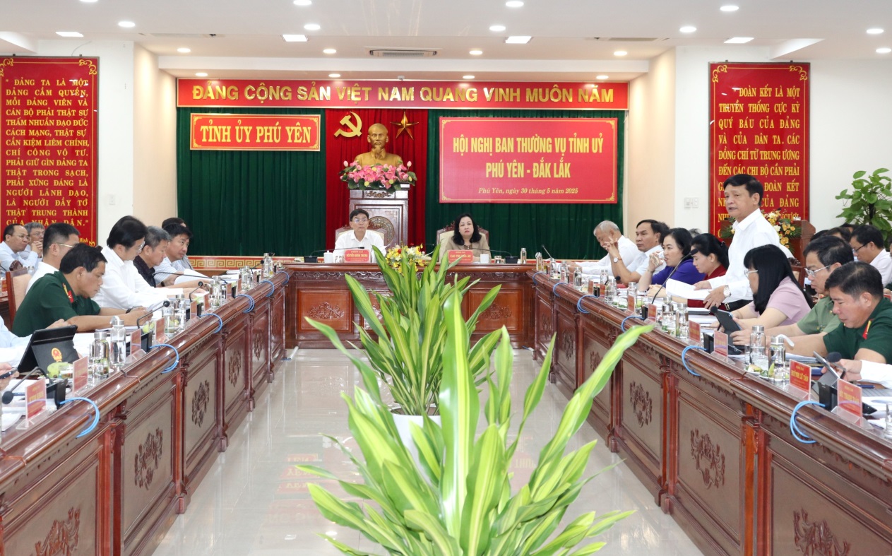 Ngày 30/5, tại Tỉnh ủy Phú Yên, Ban Thường vụ Tỉnh ủy 2 tỉnh Phú Yên và Đắk Lắk tổ chức hội nghị để nghe Thường trực Tiểu ban Văn kiện đại hội 2 tỉnh báo cáo xin ý kiến dự thảo văn kiện trình Đại hội đại biểu Đảng bộ tỉnh Đắk Lắk, nhiệm kỳ 2025-2030 sau hợp nhất.