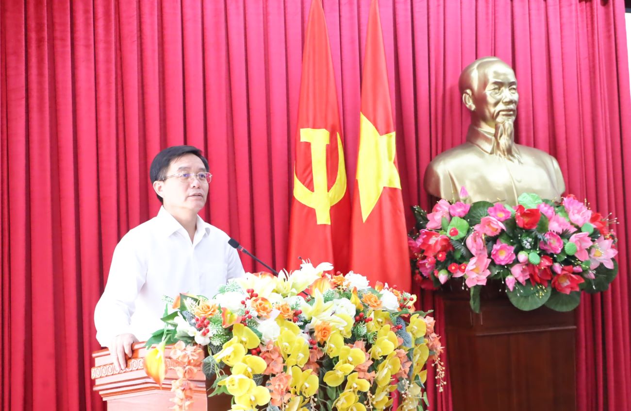 | Đồng chí Nguyễn Đình Trung - Ủy viên Trung ương Đảng, Bí thư Tỉnh ủy phát biểu tại hội nghị. |