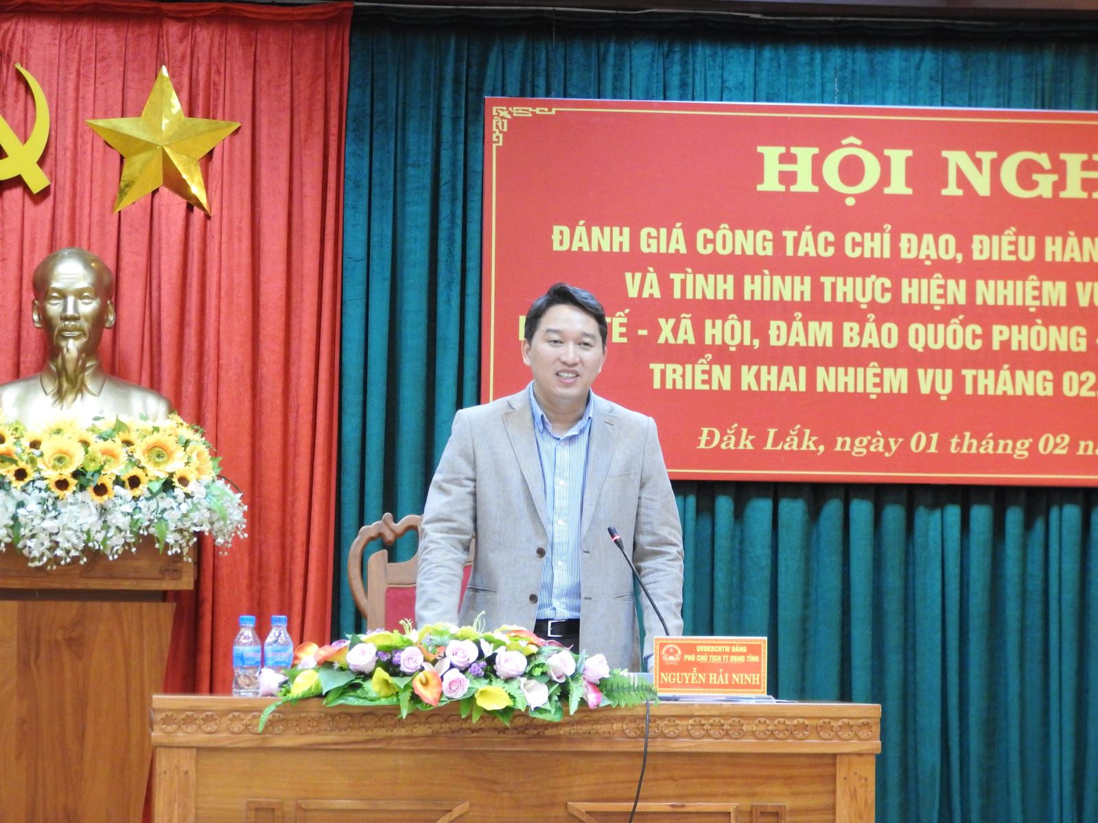 Phát biểu kết luận hội nghị, đồng chí Nguyễn Hải Ninh - Phó Chủ tịch Thường trực UBND tỉnh đã chỉ ra những hạn chế, nguyên nhân còn tồn tại để các cấp, các ngành khắc phục trong thời gian tới và không quên ghi nhận, biểu dương những cố gắng, nỗ lực của các cấp, các ngành trong việc đóng góp vào những kết quả kinh tế - xã hội, quốc phòng - an ninh chung của tỉnh. Mặc dù tháng 01/2018 nhiều chỉ tiêu kinh tế - xã hội đã vượt kế hoạch đề ra nhưng không vì thế mà lơ là về những kết quả đã đạt được vì bên cạnh đó vẫn còn một số chỉ tiêu chưa đạt kế hoạch đề ra. Do đó, đồng chí yêu cầu các cấp, các ngành cần phát huy tinh thần chủ động, sáng tạo, tập trung thực hiện nghiêm túc các chương trình hành động của Chính phủ và của UBND tỉnh; tập trung giải quyết các vấn đề khiếu nại, tố cáo của người dân, doanh nghiệp; tổ chức thăm hỏi các gia đình có công với cách mạng, hộ nghèo, vùng sâu, vùng xa bảo đảm không để người dân thiếu đói trong dịp Tết; kiểm tra pháo nổ tới tận cơ sở; áp dụng nhiều biện pháp để đạt độ che phủ rừng đạt kế hoạch đề ra…