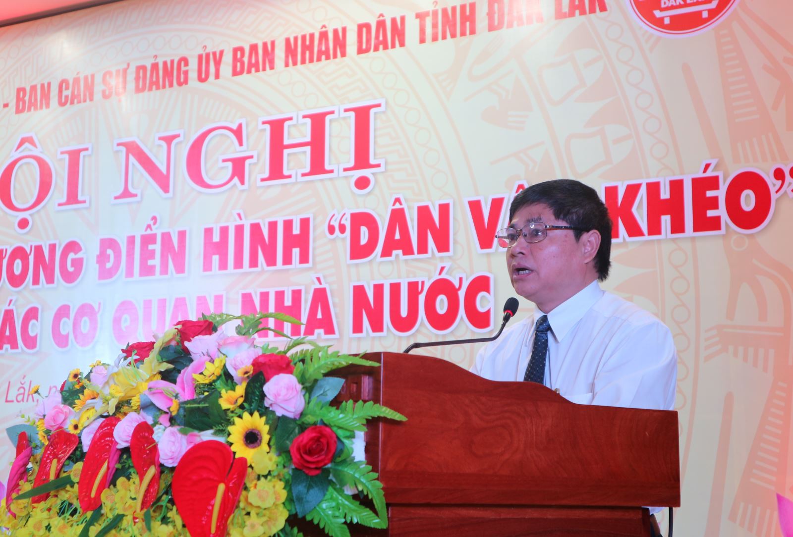 Phát biểu chỉ đạo tại hội nghị, Phó Bí thư Thường trực Tỉnh ủy - Phạm Minh Tấn nhấn mạnh: Phong trào thi đua “Dân vận khéo” của cả hệ thống chính trị nói chung, của cơ quan nhà nước nói riêng đã được triển khai rộng khắp trên địa bàn tỉnh và ngày càng đạt hiệu quả. Để công này đạt kết quả cao hơn trong thời gian tới, đồng chí đề nghị các cấp, các ngành, đơn vị, địa phương cần: chỉ đạo thực hiện toàn diện Chỉ thị 05-CT/TW của Bộ Chính trị khóa XII về “Đẩy mạnh học tập và làm theo tư tưởng, đạo đức, phong cách Hồ Chí Minh”, nhân rộng điển hình hình dân vận khéo, tạo sức lan tỏa rộng khắp; lãnh đạo tập trung thực hiện hoàn thành các chỉ tiêu kinh tế - xã hội, đảm bảo an ninh - quốc phòng; phát huy vai trò người đứng đầu, tập trung giải quyết bức xúc, đơn thư kiếu nại tố cáo của người dân; vận động quần chúng nhân dân nâng cao ý thức chấp hành pháp luật. Đồng chí cũng hi vọng, các tập thể, cá nhân tiêu biểu tiếp tục đoàn kết, phát huy tinh thần sáng tạo, giám nghĩ, giám làm, đi đầu trong các phong trào thi đua trên tất cả các lĩnh vực của đời sống.