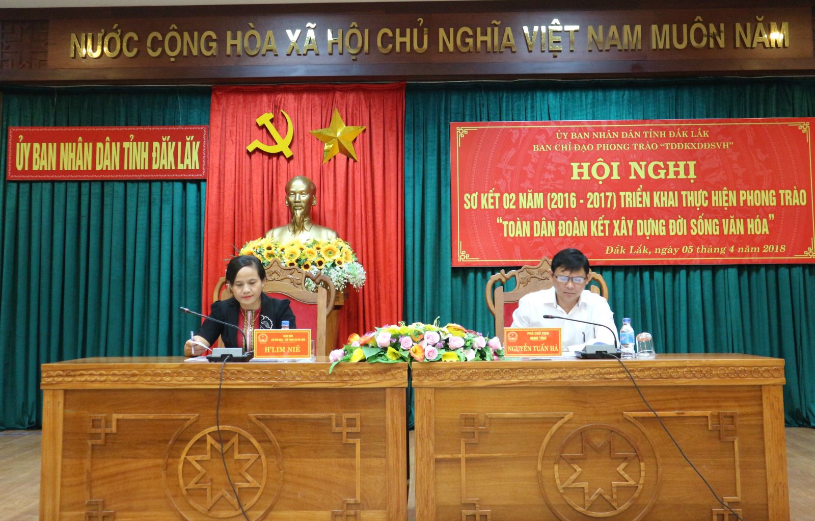 Sáng ngày 05/4/2018, Ban Chỉ đạo Toàn dân đoàn kết xây dựng đời sống văn hóa tỉnh tổ chức Hội nghị sơ kết 02 năm (2016 - 2017) thực hiện phong trào trên địa bàn tỉnh. Đồng chí Nguyễn Tuấn Hà - Phó Chủ tịch UBND tỉnh, Trưởng ban Chỉ đạo và đồng chí H' Lim Niê - Giám đốc Sở Văn hóa Thể thao và Du lịch, Phó Trưởng ban Thường trực Ban Chỉ đạo đồng chủ trì hội nghị cùng đại diện lãnh đạo các sở, ban, ngành, địa phương tham dự.