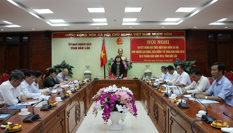 Chiều 13/11, UBND tỉnh tổ chức Hội nghị sơ kết đánh giá thực hiện bảo hiểm xã hội cho người lao động, bảo hiểm y tế toàn dân năm 2018 và 9 tháng đầu năm 2019, tỉnh Đắk Lắk. Phó Chủ tịch UBND tỉnh, Trưởng Ban Chỉ đạo H'Yim Kđoh chủ trì hội nghị.