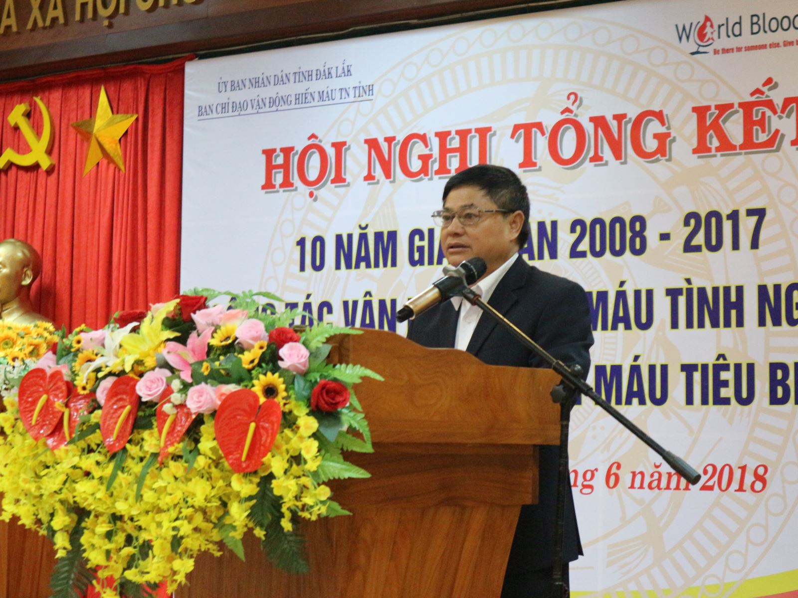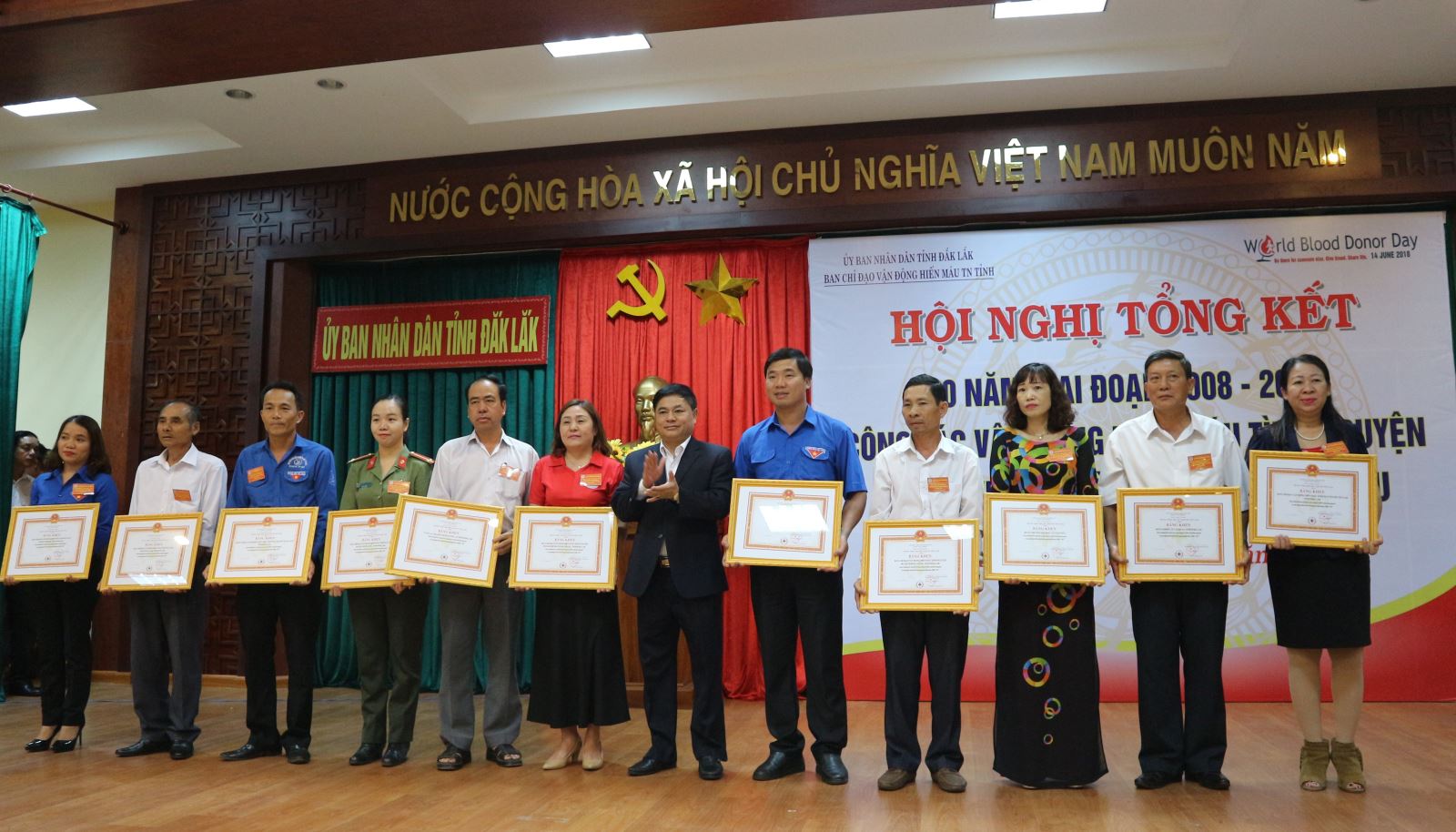 Sáng 14/6, Ban Chỉ đạo Vận động hiến máu tình nguyện tỉnh tổ chức Hội nghị tổng kết 10 năm giai đoạn 2008 - 2017 công tác vận động hiến máu tình nguyện và tôn vinh người hiến máu tiêu biểu tỉnh Đắk Lắk. Tham dự hội nghị có Phó Bí thư Thường trực Tỉnh ủy - Phạm Minh Tấn; Phó Chủ tịch UBND tỉnh, Trưởng ban Chỉ đạo Vận động hiến máu tình nguyện tỉnh - H’Yim Kđoh; các thành viên Ban Chỉ đạo; lãnh đạo các sở, ban ngành, địa phương; các cá nhân và gia đình tiêu biểu trong công tác hiến máu tình nguyện.