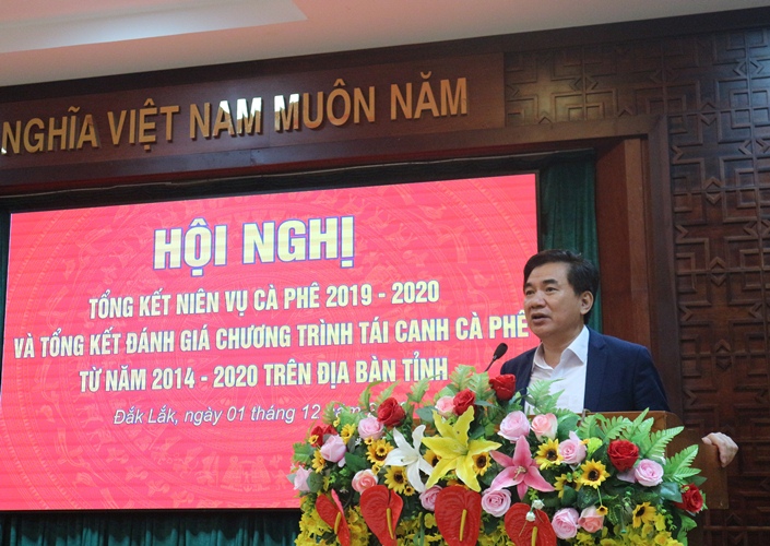 Phát biểu kết luận hội nghị, Phó Chủ tịch UBND tỉnh Y Giang Gry Niê Knơng phát nhấn mạnh: Cà phê vẫn là cây trồng chủ lực, mặt hàng xuất khẩu chính của tỉnh. Do đó, các địa phương cần tiếp tục khai thác tiềm năng, thế mạnh vùng miền, ưu tiên phát triển cà phê đặc sản; hỗ trợ thực hiện liên kết phát triển ứng dụng công nghệ cao vào sản xuất; đưa các giống cà phê mới có năng suất cao, chất lượng tốt vào sản xuất; đẩy mạnh hoạt động xúc tiến đầu tư vào chế biến sâu; hỗ trợ các doanh nghiệp mở rộng thị trường xuất khẩu đối với cà phê mang chỉ dẫn địa lý Buôn Ma Thuột. Đồng thời, áp dụng triệt để các giải pháp kỹ thuật; đẩy mạnh tuyên truyền cho người dân được biết và hỗ trợ người dân tiếp cận nguồn vốn đối với tái canh cây cà phê.
