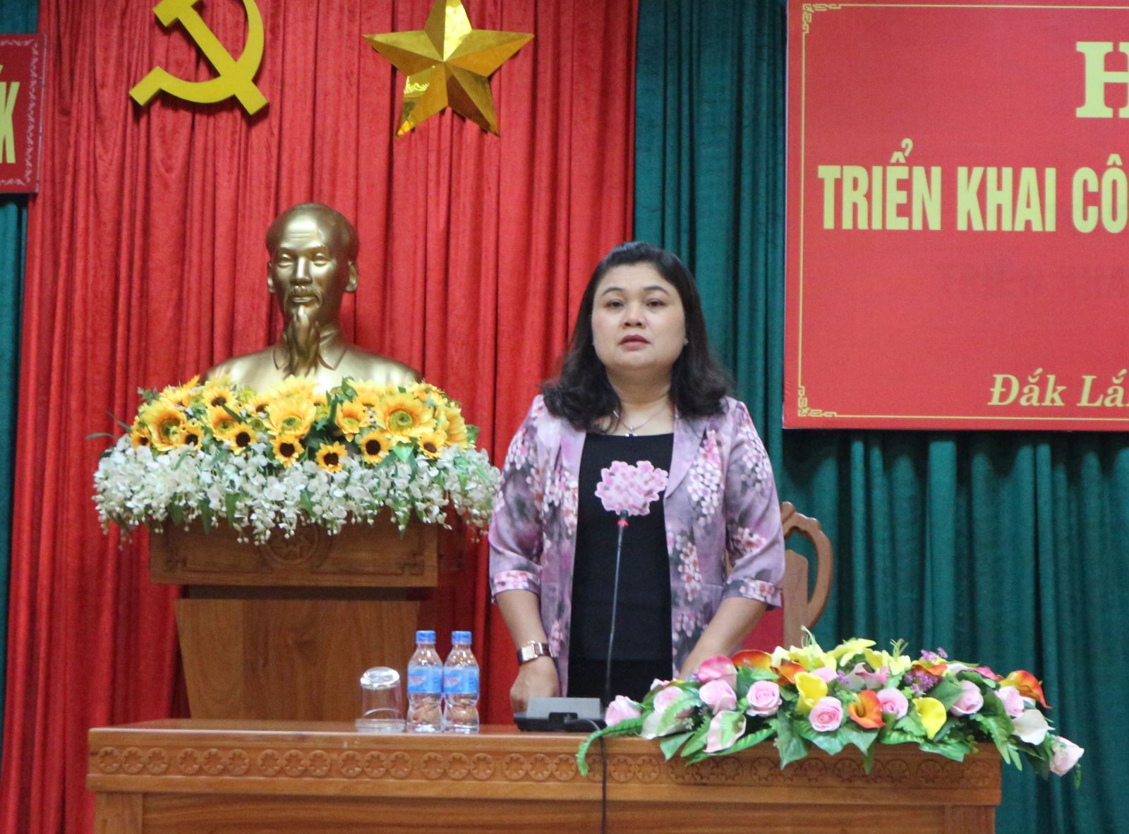 | Đồng chí H'Yim Kđoh Phó Chủ tịch UBND tỉnh, Trưởng ban Chỉ đạo phòng chống dịch bệnh phát biểu tại hội nghị |