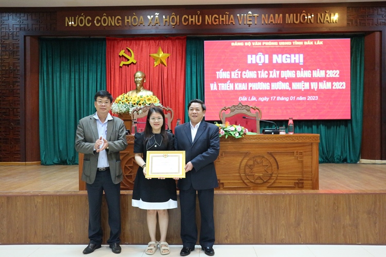 Cũng tại hội nghị, Đảng ủy Văn phòng đã trao Giấy khen cho 1 tập thể và 15 cá nhân có thành tích xuất sắc trong công tác năm 2022.