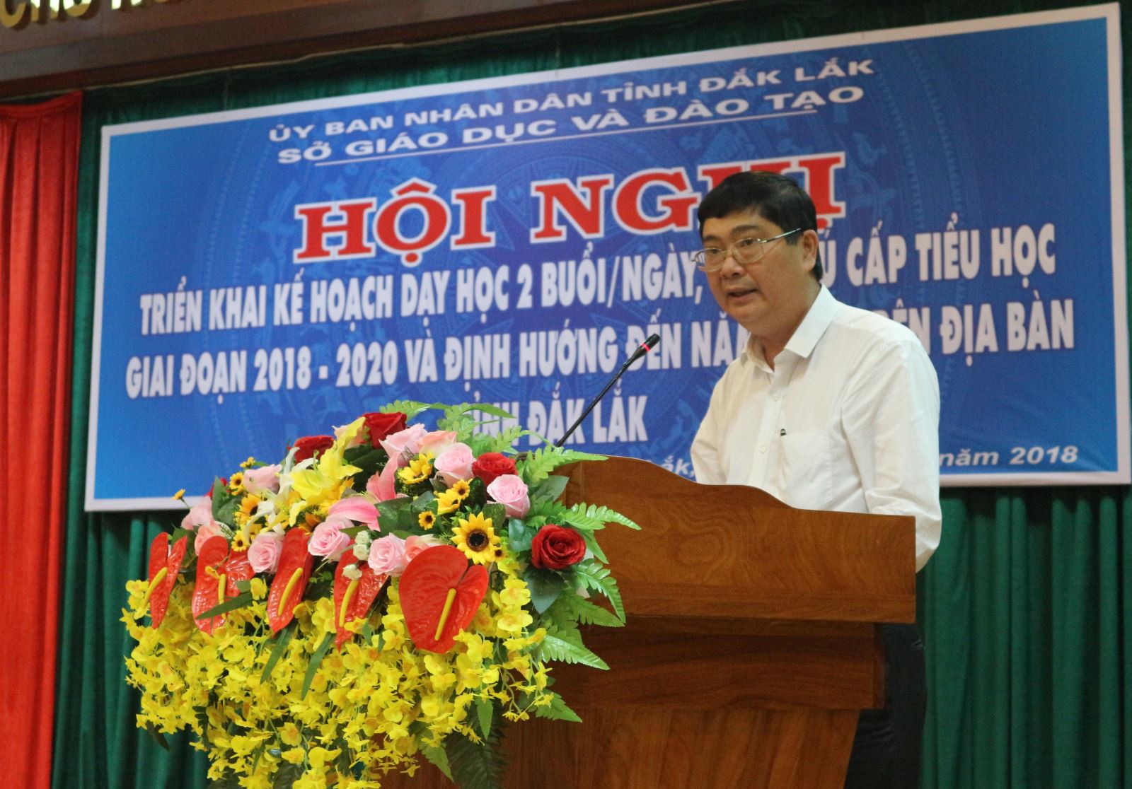 Chiều ngày 22/5/3018, UBND tỉnh đã tổ chức Hội nghị triển khai Kế hoạch dạy học 2 buổi/ngày, bán trú cấp tiểu học giai đoạn 2018 - 2020 và định hướng đến năm 2025 trên địa bàn tỉnh. Tham dự hội nghị có Phó Chủ tịch UBND tỉnh - H’Yim Kđoh; lãnh đạo Sở Giáo dục và Đào tạo; lãnh đạo UBND, Phòng Giáo dục và Đào tạo các huyện, thị xã, thành phố trên địa bàn tỉnh.