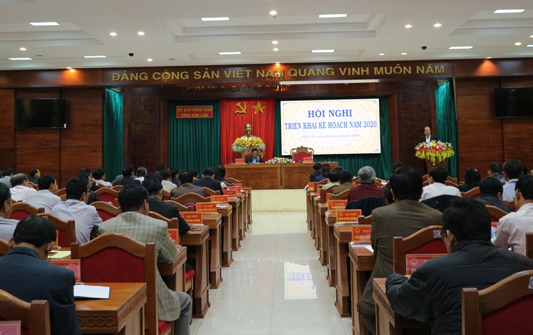 Sáng 27/12, UBND tỉnh tổ chức Hội nghị triển khai kế hoạch năm 2020. Tham dự hội nghị có các đồng chí: Bí thư Tỉnh uỷ Bùi Văn Cường; Chủ tịch UBND tỉnh Phạm Ngọc Nghị, Phó Chủ tịch Thường trực UBND tỉnh Nguyễn Tuấn Hà; Phó Chủ tịch UBND tỉnh H'Yim Kđoh; lãnh đạo các sở, ngành, địa phương cùng tham dự.