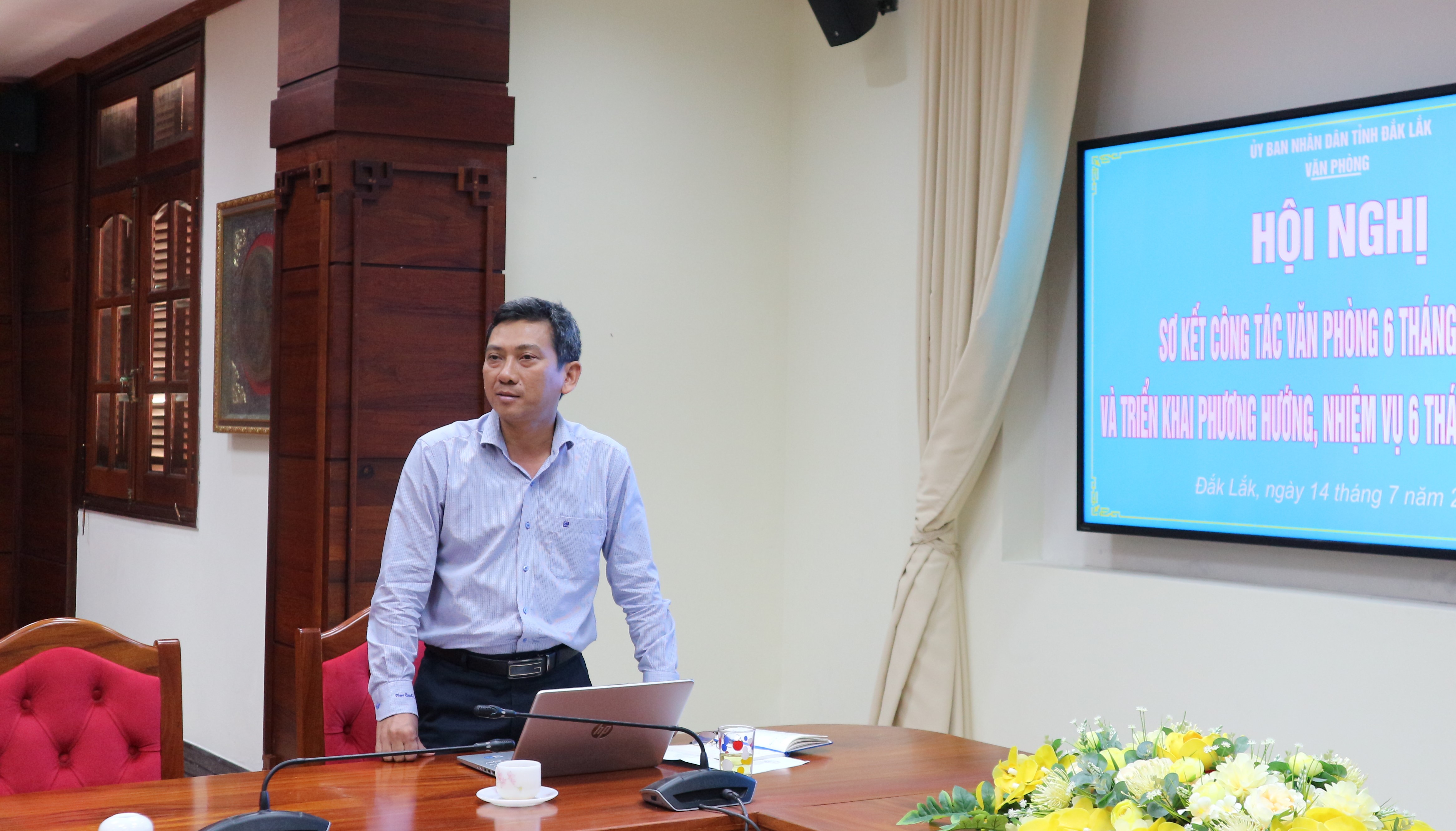 Phát biểu chỉ đạo tại hội nghị, Tỉnh uỷ viên, Chánh Văn phòng UBND tỉnh Bùi Hồng Quý ghi nhận, biểu dương những kết quả đạt được của tập thể Văn phòng UBND tỉnh trong 6 tháng đầu năm, qua đó góp phần vào những thành công chung của tỉnh trong thực hiện mục phát triển kinh tế - xã hội, đảm bảo quốc phòng - an ninh. Để hoàn thành chương trình, kế hoạch của UBND tỉnh năm 2023, đồng chí để nghị các phòng, đơn vị tập trung thực hiện các nhiệm vụ trọng tâm sau: đảm bảo các điều kiện để thi công cao tốc Khánh Hòa - Buôn Ma Thuột; thường xuyên theo dõi, đôn đốc các sở, ngành chuẩn bị kỹ các nội dung trình kỳ họp HĐND tỉnh; tập trung giải quyết dứt điểm các đơn thư khiếu nại, tố cáo; chủ động trao đổi thông tin nhằm tháo gỡ khó khăn; tăng cường các giải pháp để đảm bảo an toàn lưu trữ điện tử; triển khai có hiệu quả công tác cải cách hành chính; tăng cường ứng dụng công nghệ thông tin trong hoạt động của Văn phòng…