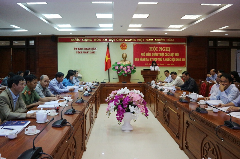Phát biểu khai mạc hội nghị, Phó Chủ tịch UBND tỉnh Võ Văn Cảnh nhấn mạnh: Tại kỳ họp thứ 7, Quốc hội nước Cộng hòa xã hội chủ nghĩa Việt Nam khóa XIV đã thông qua: Luật Kiến trúc và Luật Phòng, chống tác hại của rượu bia; Luật Quản lý thuế; Luật Đầu tư công; Luật Thi hành án dân sự; Luật Giáo dục; Luật sửa đổi, bổ sung một số điều của Luật Kinh doanh bảo hiểm, Luật Sở hữu trí tuệ. Những luật này có ý nghĩa quan trọng trong việc thể chế hóa đường lối, chủ trương của Đảng và chính sách pháp luật của Nhà nước về giáo dục; quản lý thuế; đầu tư công; kiến trúc; kinh doanh bảo hiểm; sở hữu trí tuệ; phòng, chống tác hại của rượu bia và thi hành án hình sự. Qua đó góp phần khắc phục tồn tại, hạn chế và tiếp tục hoàn thiện hệ thống cơ chế, chính sách trong tình hình mới. Trên cơ sở đó, đồng chí đề nghị các cấp, các ngành của tỉnh tổ chức triển khai đưa các đạo luật này đi vào thực tiễn cuộc sống. Bên cạnh đó, hội nghị là một trong những hoạt động nhằm hưởng ứng ngày Pháp luật nước Cộng hòa xã hội chủ nghĩa Việt Nam trên địa bàn tỉnh, làm cơ sở cho việc triển khai công tác tuyên truyền và tổ chức thực hiện pháp luật ở từng cấp, từng ngành và từng địa phương trong thời gian tới.