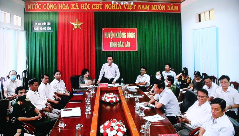 | Điểm cầu UBND huyện Krông Bông tham gia ý kiến |