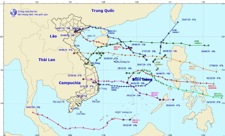 | Quỹ đạo bão và áp thấp nhiệt đới năm 2019 |
