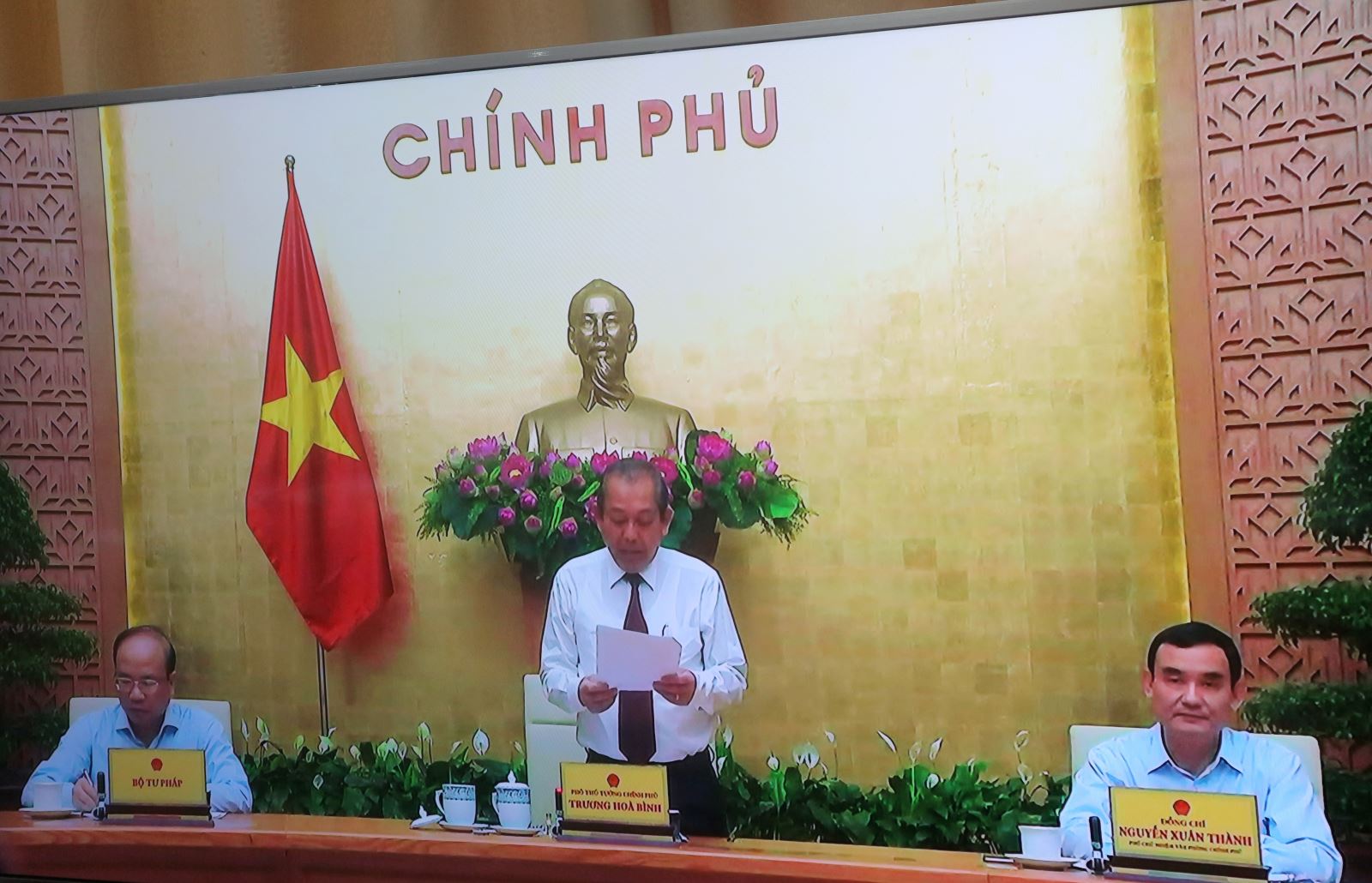 | Phó Thủ tướng Thường trực Chính phủ - Trương Hòa Bình phát biểu kết luận hội nghị (ảnh chụp từ màn mình) |