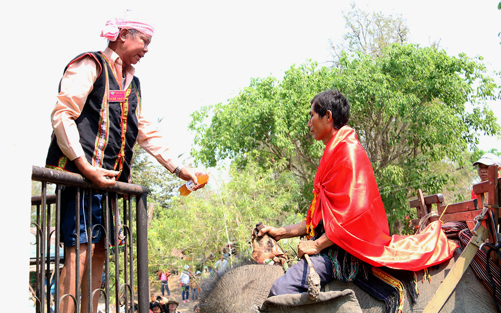 | Lễ cúng sức khỏe cho voi - Một trong những nghi thức văn hóa đặc sắc trong khuôn khổ Hội voi Buôn Đôn. |