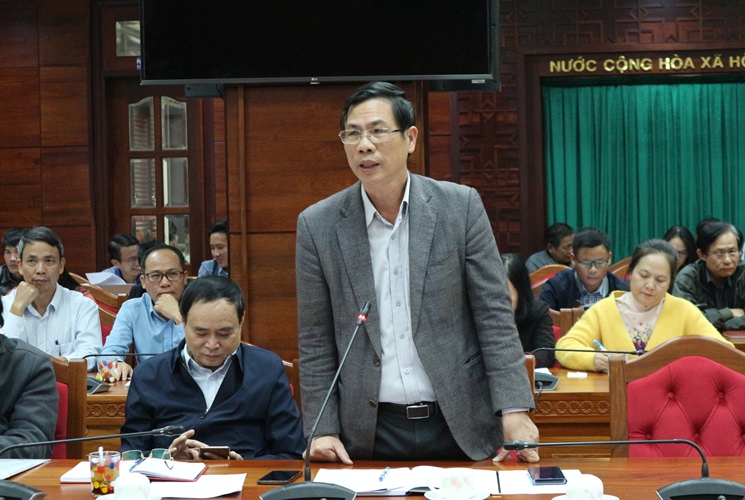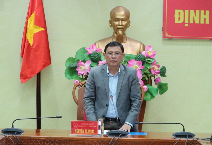 | Phó Chủ tịch Thường trực UBND tỉnh Nguyễn Tuấn Hà phát biểu tại buổi họp báo |