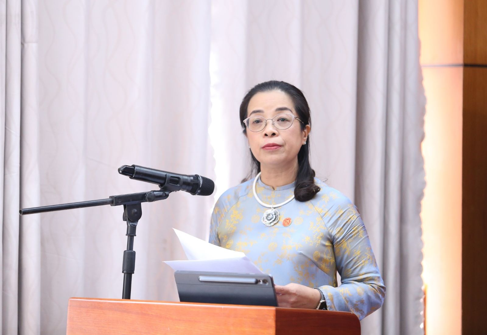 Đồng chí Cao Thị Hòa An – Phó Bí thư Thường trực Tỉnh ủy, Chủ tịch HĐND tỉnh phát biểu khai mạc buổi họp báo.
