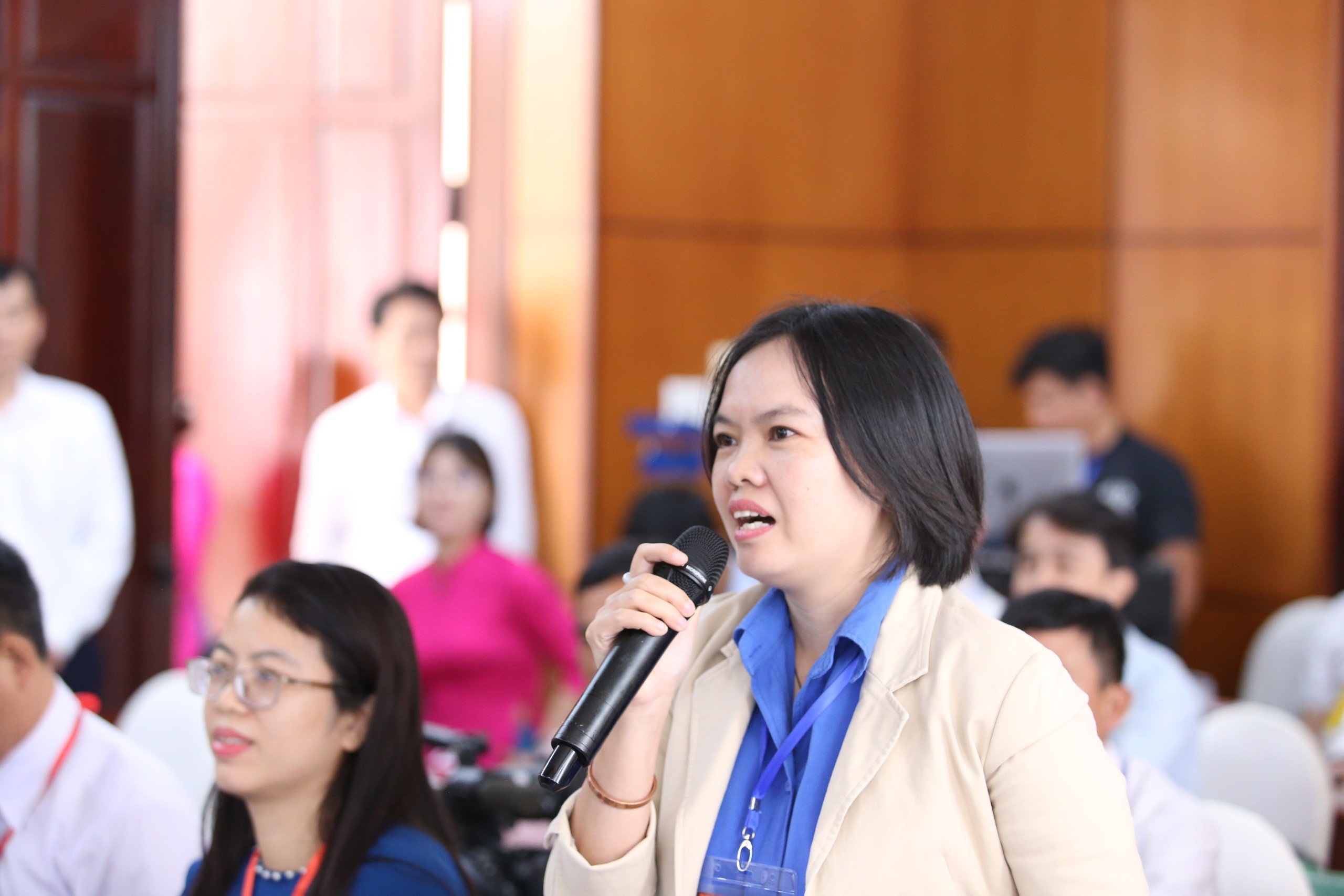 Phóng viên Vũ Nam Trang – VOV Tây Nguyên phát biểu tại buổi họp báo.