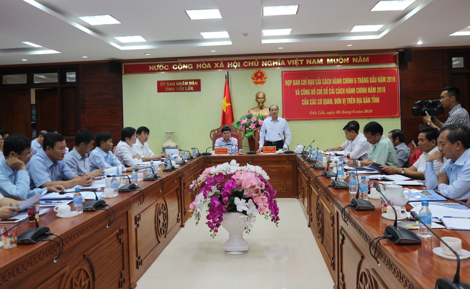 Sáng 5/6, Ban Chỉ đạo cải cách hành chính tỉnh 6 tháng đầu năm 2019 và công bố chỉ số cải cách hành chính năm 2018 của các cơ quan, đơn vị trên địa bàn tỉnh theo hình thức trực tuyến. Phó Bí thư Thường trực Tỉnh ủy Phạm Minh Tấn và Chủ tịch UBND tỉnh, Trưởng ban Chỉ đạo cải cách hành chính tỉnh Phạm Ngọc Nghị chủ trì cuộc họp tại điểm cầu UBND tỉnh.