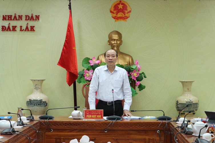 | Phó Bí thư Tỉnh ủy, Chủ tịch UBND tỉnh Phạm Ngọc Nghị phát biểu kết luận cuộc họp |