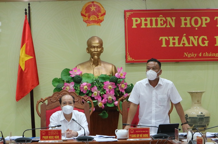 | Phó Chủ tịch UBND tỉnh Y Giang Gry Niê Knơng tham gia thảo luận |