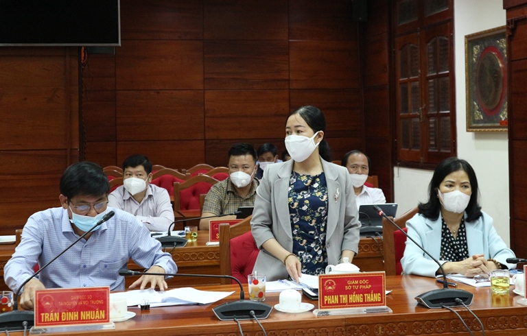 | Giám đốc Sở Tư pháp Phan Thị Hồng Thắng tham gia ý kiến |
