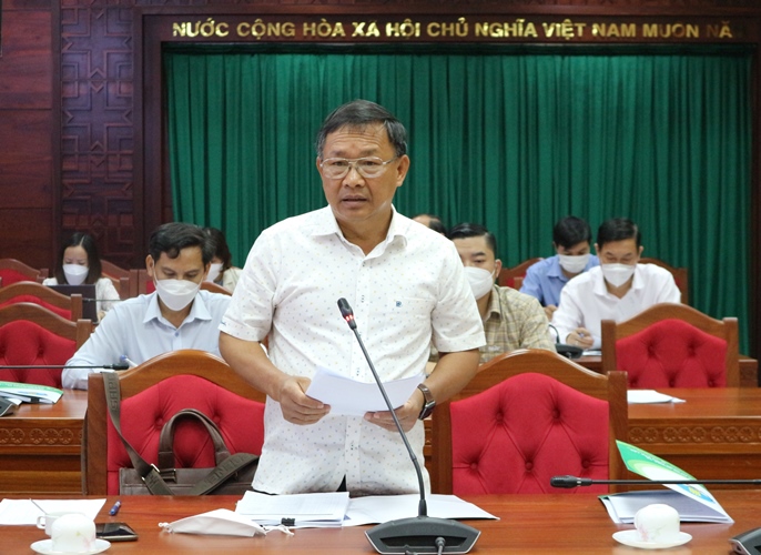 | Lãnh đạo Sở Nông nghiệp và Phát triển nông thôn báo cáo kết quả công tác chuẩn bị hội nghị |
